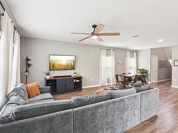 Welcome to this beautifully designed 5-bedroom, 3-bath home built in 2023 and located in a desirable new home community off Overpass Road in Wesley Chapel. This residence offers a thoughtful layout, modern finishes, and an ideal blend of comfort and convenience. The first floor features an open-concept living area filled with natural light and a seamless flow between the kitchen, dining, and gathering spaces. A private guest suite with a full bath is tucked away for added privacy. Upstairs, a spacious recreation loft offers plenty of flexibility, whether used as a media room, home office, or lounge. The kitchen is a true highlight, showcasing white cabinetry, elegant grey quartz countertops, and stainless-steel GE appliances, including a refrigerator. Grey-toned, wood-look flooring enhances the modern coastal feel while providing durability and style. The primary suite offers a serene retreat with a walk-in shower, dual vanities, and an oversized walk-in closet. Additional details include granite and quartz countertops throughout, a washer and dryer, and thoughtfully selected finishes that bring a touch of sophistication to every room. Outside of the home, residents enjoy access to everything Wesley Chapel has to offer, with abundant shopping, dining, and recreational opportunities just minutes away. This property combines fresh design with a highly sought-after location, making it an excellent choice for today’s lifestyle.