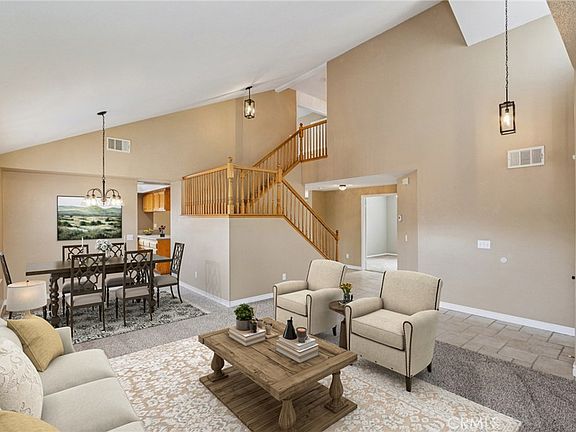 Beautiful 4-Bedroom, 3-Bath Home in Wildomar! NO HOA & VERY LOW TAXES. This charming home welcomes you with a bright entry featuring vaulted ceilings and an inviting formal living and dining room, perfect for entertaining. The kitchen offers granite countertops and opens to the spacious family room with a cozy fireplace, creating a warm and comfortable gathering space. A beautiful breakfast nook surrounded by windows fills the home with natural light and overlooks the backyard. The layout includes one bedroom and full bath conveniently located on the main floor, with three additional bedrooms upstairs, including a spacious primary suite with a relaxing sitting area. Recent updates include brand-new carpet, newer exterior paint, and upgraded finishes that enhance the home’s modern appeal. The pool-sized backyard is ideal for outdoor living, featuring a large patio area and plenty of room to design your dream yard. Additional highlights include a 3-car garage and a great cul de sac location. The home is just minutes from the 15 Freeway, making it perfect for commuters, and is close to grocery shopping, restaurants, and retail stores for added convenience. Don’t miss the chance to make this beautiful Wildomar home yours — it offers the perfect blend of comfort, location, and value!