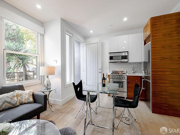 Welcome to 3418 26th St #1, a stylish and modern studio located in the lively Mission District. Featuring its own dedicated, private entrance, this modern condo offers an easy gateway to your vibrant neighborhood. Interior features include beautiful Italian oak wood floors, high-end custom cabinetry, Bertazzoni stainless steel stove, Grohe fixtures, and quartz countertops making this space feel sleek and contemporary. The bathroom includes a luxurious glass-tiled shower, and the living area is enhanced by a cozy gas fireplace. High-tech features include in-ceiling surround sound speakers, in-unit laundry, and high speed Google 5GB Webpass access. Common roof top deck has a gorgeous panoramic view of the city skyline, Bay Bridge, and Bernal Heights Hill. With a near-perfect walk score, this prime location puts everything within easy reach, including world-class bars and restaurants offering diverse international cuisine. You're just two blocks from the 24th Street Mission BART station and a short walk to the Apple and Google shuttle stops. Quick access to the 101 and 280 freeways makes commuting a breeze. Enjoy the best of city living with easy access to Mission and Valencia Streets, and make this modern Mission District gem your new home! Not a BMR.