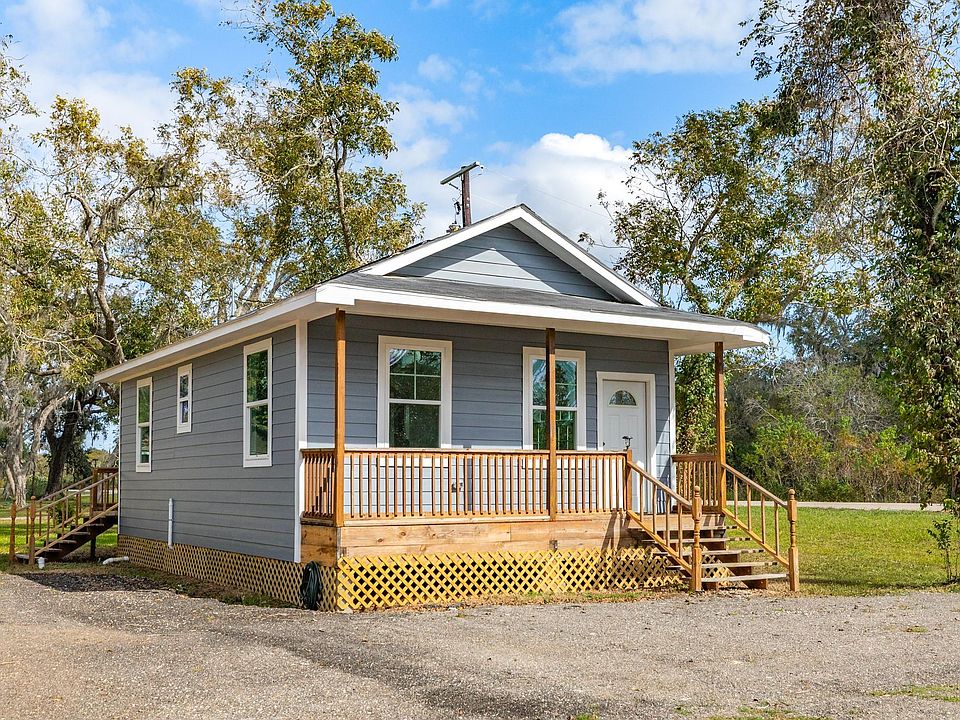 Discover peaceful country living in this charming NEW-build beautiful home in Brazoria! NEW septic system, NEW electric pole, NEW well, NEW AC/Heater mini-splitter (2025). Just 3 minutes from the San Bernard River, a public boat ramp, and The San Bernard National Wildlife Refuge. This 2-bedroom, 1-bath home sits on an impressive 11,000+ lot with endless possibilities, add a barn, garage, workshop, or even another home. Relax and enjoy your morning coffee on the back deck or the front porch overlooking the wide-open yard. Inside, the bright living area flows into a modern kitchen. The primary bedroom features beautiful natural light and views of the property. Only 15 minutes to Brazoria, Lake Jackson and Freeport, this cozy retreat is perfect for first time homebuyers, weekend getaways, full-time living, or an investment opportunity. Country comfort with convenience just moments away. Peaceful, simple, and full of opportunity!