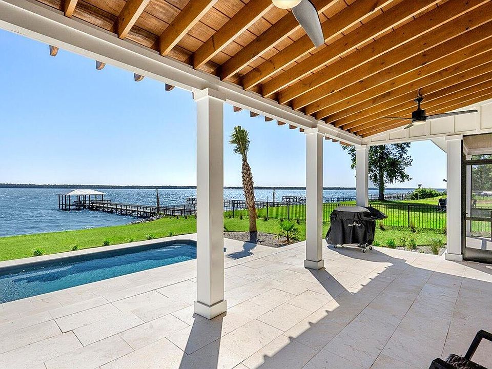 The Cottage at Princess Pond, built in 2022. A stunning modern farmhouse lakefront residence. This home has tall ceilings, 2289 square feet of living space inside its open floor plan with 3 oversized bedrooms & 3 bathrooms. This home is a chefs dream it has a large walk-in pantry with all the best appliances including a gas range, Wi-Fi cafe appliances & a large walk in laundry room & Wi-Fi thermostat controllers. 700 square feet of outdoor living space that includes 2 screen porches with a dining area & quartzite dry bar over-looking Santee big water with a beautiful, heated saltwater pool that is surrounded with travertine patio. Enjoy the best sunsets on the lake every afternoon by your new pool. This property has a new Trex no burn surface pier with a 10,000 lbs boat lift & new seawall. Detached garage, concrete parking, landscape yard & sprinkler system. This home is a show piece & has a great rental history both personal & Air B&B. "If square feet is important, please measure"