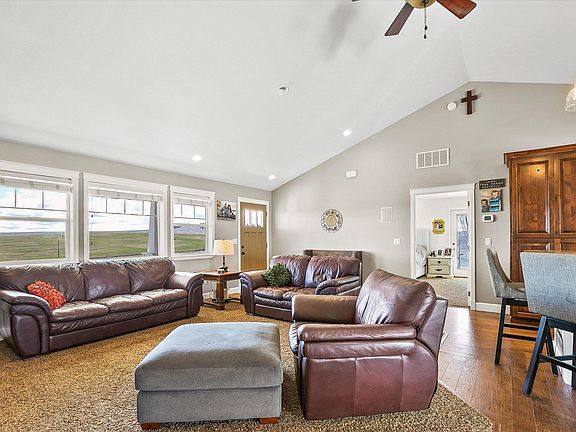 Discover this exceptional custom home nestled on nearly 20 acres, just a short drive from Spokane. Crafted by the builder for personal residence, it offers unparalleled end-of-the-road privacy & breathtaking 360-degree panoramic views.Featuring 5 spacious bedrooms and 3 bathrooms, this home is a sanctuary of comfort. The beautiful covered porch with stamped concrete invites relaxation, while inside, a theater room with a wet bar & a large craft room provide spaces for creativity & entertainment. Hardwood floors, custom wood cabinetry, a floor-to-ceiling stone fireplace, soaring ceilings, & a gourmet kitchen with granite counters & a large island showcase the meticulous upgrades throughout. Step outside to a large yard, a storage shed, and a colossal 40x40 shop with additional covered parking for all your toys. The property comes complete with your very own motocross track. Don't miss the chance to call this unique property home, where comfort, craftsmanship, and panoramic views converge.