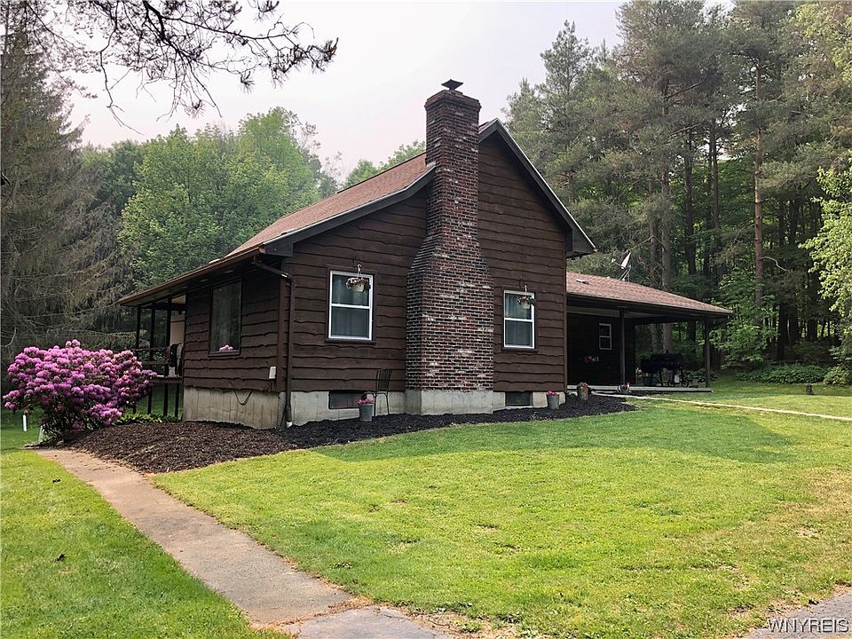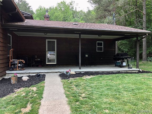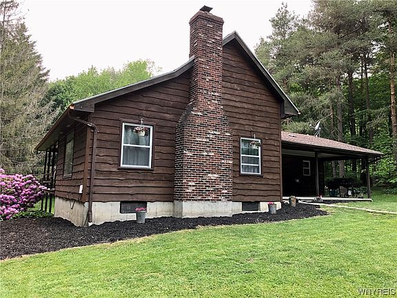 Gorgeous setting for this rough cut, live edge, Hemlock sided house on almost 16 acres with a large spring fed pond. Large open concept living room, kitchen and dining room. 4 bedrooms total. 2 on the main floor, 1 upstairs and 1 in the basement. 2 full baths. All new windows, pellet stove fireplace and a walk-out basement. Generator hook-up, brand new septic system and the garage can be heated with the wood stove. All appliances and chicken coop included. Some furnishings can be included if desired.