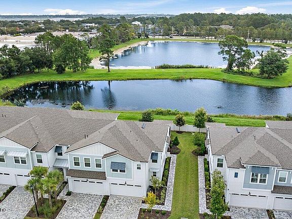 PRIMARY SUITE ON FIRST FLOOR! This End Unit Luxury Townhome is located close to the beaches, Mayo Clinic and is walkable to shops & restaurants. Pablo Cove is a gated community with Sparkling Community Pool, Fitness Center & Cabana Area, Live the Carefree lifestyle. The Living Space is Bright and open with High Ceilings, Open Concept, Wood-like Tile, The Kitchen has Food Prep Island, Tile Backsplash, Soft Close Cabinets, Quartz Counters, Reverse Osmosis Filtration System, Insta-hot water, Pendant Lights, Pantry, all open with views of the pond and Screened Lanai, There is a Powder Room and Laundry Room along with a Spacious Primary Suite on the First Floor w/Walk-in Closet, Ensuite Bath w/Double Vanity, Shower and Private Water Closet, Second Floor has a large Loft, 2 Bedrooms w/Walk-in Closets and there is a guest bath. Features: Tray Ceilings, 8'Doors, Recessed Lighting, Water Softener, Attached Two Car Garage and Sizable Driveway.