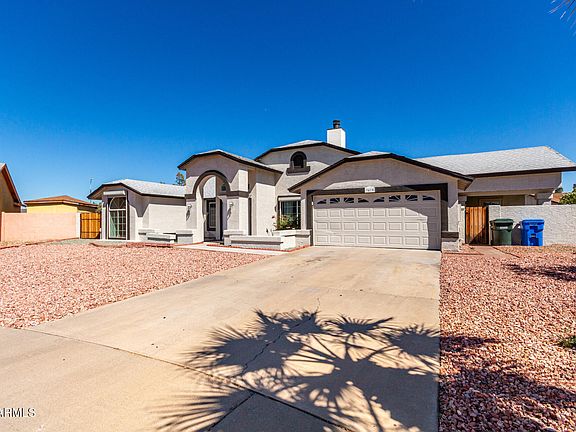 Spacious and move-in ready, this home is one of the few in West Phoenix with BOTH a 2-car garage and a private detached studio. Enjoy vaulted ceilings, A cozy stone fireplace, and an open kitchen recently remodeled with granite counters, crown-molded, cabinetry, and stainless appliances. Bathrooms were partially updated and Home was just freshly painted inside and out with brand new carpet throughout.