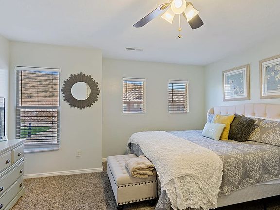 Highest and Best by 2pm on Friday September 4th. Beautiful townhome near Desert Hills High School and not far from I-15. End unit overlooking pool, clubhouse, and playground. Kitchen and 2 family room areas on main floor. Bedrooms, laundry, and master located on the 2nd floor. Lots of open living space. Lots of storage space too. Designated covered parking spot right in front. Refrigerator, washer, dryer, and most furniture available if wanted. HOA takes care of all landscaping.