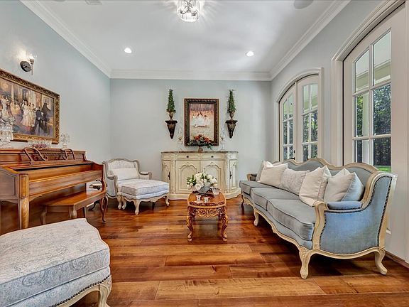 Welcome to your private retreat on 5 peaceful acres in one of Hudson ISD's most desirable neighborhoods. This Southern Living-inspired, one-owner custom estate offers 5,073 sq. ft., 5 bedrooms, and 4.5 baths. A circle drive, manicured landscaping, boxwoods, and a 4-tier fountain create a grand first impression, while a wrap-around porch with swing sets a charming tone. Inside, French doors brighten the living spaces, including a living room with woodburning fireplace and a chef's kitchen with ornate island, custom cabinetry, 48" Sub-Zero fridge, double ovens, warming drawer, 6-burner + griddle, and dual pantries. The downstairs primary suite boasts a spa bath with soaking tub, large walk-in shower, and dual closets, while a guest suite adds comfort. Outdoor living is unrivaled with a gunite resort pool and spa surrounded by lush tropical landscaping, expansive covered porch with multiple seating areas, full outdoor kitchen, fire pit, and a carriage house—luxury and charm combined.
