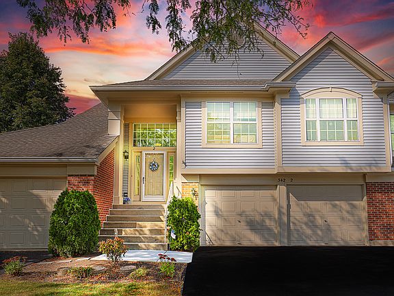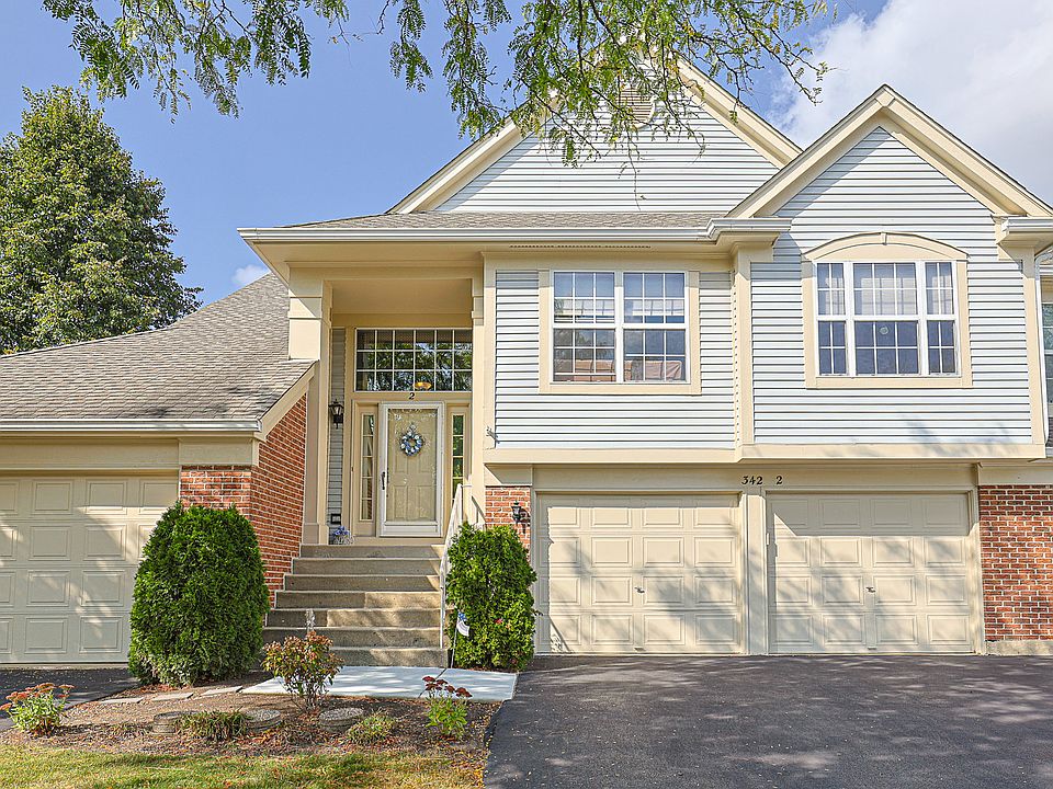 Welcome to 342 Ashford Cir unit 2, this is truly a Loved home! Open & Airy 2 Bedroom & Den with 2 Full Bath in Immaculate Condition and 2 Car Garage! Step up into the foyer so you can Look into the Lovely Dining & Living Room with Neutral Carpet Vaulted Ceiling & Gas Start Fireplace! New Sliding Glass Door Has Been ordered so that you can easily enter onto the Updated composite Balcony. Large Master Bedroom with Vaulted Ceiling, Ceiling Fan & Walk in Closet overlooks the back yard area! Master Bath with Shower surround and Vanity area with sink & Linen Closet! Just so pretty 2nd bedroom with closet, & lots of natural light! 2nd Full Bath with Tub! Spacious Den with Ceiling Fan, for Home office or family room area! Beautiful Kitchen has Lots of Oak Cabinets with Crown molding and Butler Pantry with Glass Doors and Ceiling Fan! Stainless Steel Appliances! Laundry room has washer, and dryer that will stay with home. 6 Panel White Doors. Large 2 Car Garage to keep your car and some storage. Owner believes Furnace Replaced in 2013 & A/C Replaced in 2016. In a perfect location close to shopping and Restaurants! Metra not too far away! Selling As is but is in Nice condition!