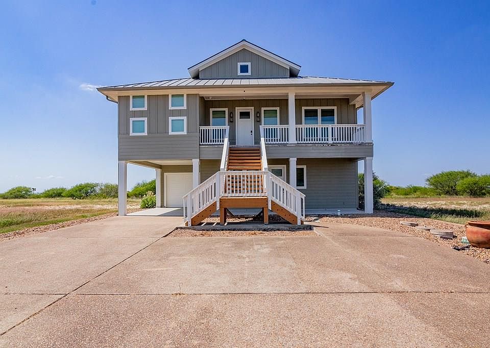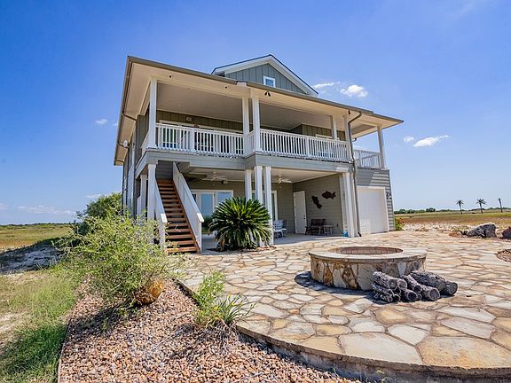 Nestled along the tranquil shores of San Antonio Bay in Seadrift, TX, this exceptional waterfront home is a blend of luxury, comfort, and natural beauty. Upon entering the second floor, you are welcomed with an open concept living area, a charming fireplace adding warmth and elegance. The expansive kitchen features abundant counter space and cabinetry, ideal for the avid cook. A guest bedroom and the primary bedroom with an ensuite. Step out to the covered patio, take a deep breath and take it all in where unobstructed, panoramic views of the sparkling bay await you. The downstairs area provides two bedrooms, a stylish guest bath featuring a walk-in shower, and a second living area complete with a wet bar, tackle closet and laundry room. Outside, the lower-level covered patio leads to a firepit, an outdoor shower, and a scenic walkway to the bay. The gated community offers access to a scenic walking path, two 400-foot piers, and a covered picnic area.