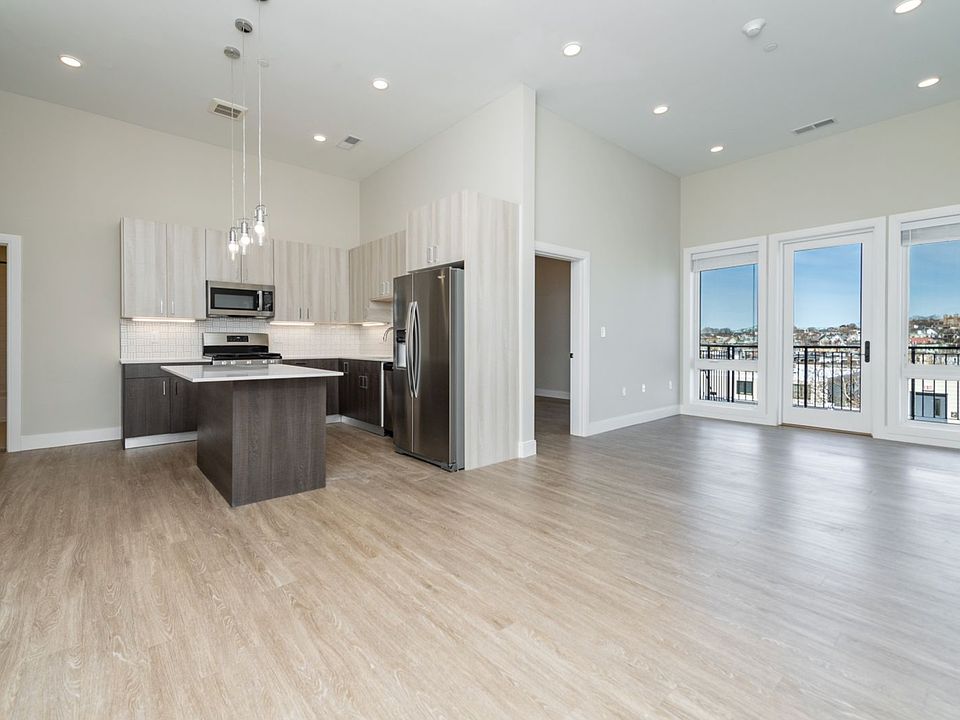 spacious luxury residence features hardwood, recessed lighting, high ceilings, oversized windows and a sundrenched balcony!