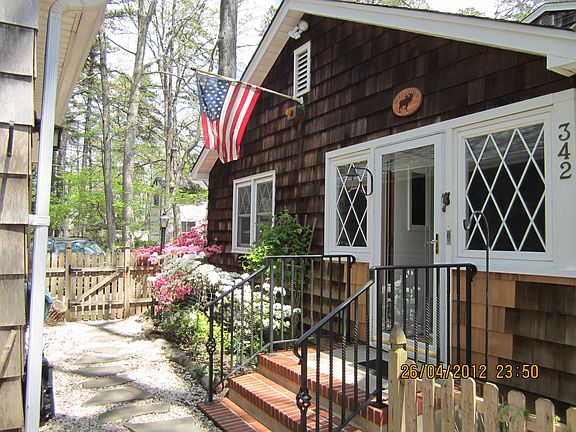 The house is situated on a well-maintained landscaped double lot in the historic, private river beach community of Cedarcroft in Brick NJ. This lovely two-story, cedar shake home has four bedrooms and two full baths with plenty of natural sunlight, river views, and cool river breezes. The property includes a detached garage that has been remodeled to contain a 11x12 finished bonus room with its own separate entrance in addition to a large workspace that is accessed by the garage bay at the top of the driveway; or it can be easily converted back to a one car garage. Property owners can enjoy river views on a newer deck and bar area built off of the beautiful energy efficient four seasons sunroom in the rear of the property, or take pleasure in a Vermont slate patio positioned in the seclusion of mature gardens in the front of the property.The house is located in a highly desirable neighborhood beach association off of Princeton Avenue, with tree-lined streets. Within the community of Cedarcroft residents have access to a private bathing beach, boat docks, and watercraft launching areas. Walking distance to Windward Beach, where the famous Brick Township “Summerfest” is held along with other great summer activities such as drive in movie events, fireworks (which can be viewed from Cedarcroft’s private bathing beach), and summer concerts. At the foot of neighborhood is Windward Tavern, a great new restaurant and bar.