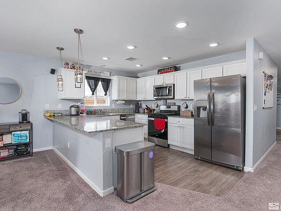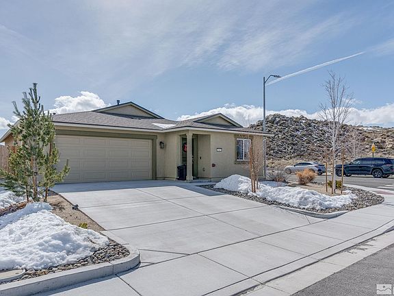 Come see this beautiful one story, corner lot home that offers an open concept floor plan with lots of natural light. With no direct rear neighbors, this is the highly coveted split floorplan with the primary bedroom on one side of the home, and the two additional bedrooms on the other. Just down the hall is a spacious living and dining area wrapped into the great room, perfect for family kareoke time., This home is located in the NV flats community just a few minutes from 395 and easy access to downtown Reno & UNR. The kitchen features granite counter tops, stainless appliances and beautiful white cabinets. As a corner lot there is plenty of parking space for that house warming party!