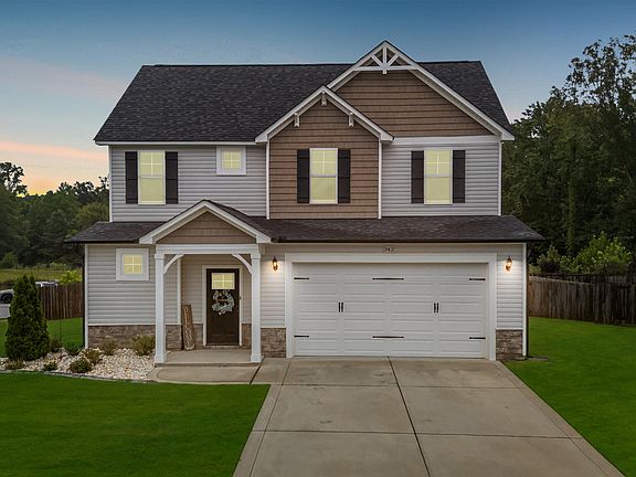 Welcome to 342 Durwin Lane, a beautifully maintained 3-bedroom, 2.5-bath home nestled in the sought-after Ashcroft neighborhood of Clayton. Built in 2020 and offering 1,833 square feet of thoughtfully designed living space, this home sits on a spacious 0.22-acre corner lot at the entry of a quiet cul-de-sac—perfect for those who crave peace and privacy without sacrificing convenience. Step inside to discover an open-concept layout filled with natural light, modern finishes, and ample room to entertain or unwind. The kitchen features granite countertops, stainless steel appliances, and an island that flows seamlessly into the dining and living areas. Upstairs, you'll enjoy a large loft area, with a primary suite featuring an ensuite bath as well as walk-in closet, and the two additional bedrooms offering flexibility for guests, a home office, or hobbies. Outside, enjoy your own private oasis with a fully fenced 6-foot privacy fence—ideal for pets, play, or peaceful evenings under the stars. Custom stamped concrete curbing around the flower bed as well as river rock offer low maintenance with the highest curb appeal. The corner lot provides extra space and appeal, all within an established community. With convenient access to major highways for easy commuting, proximity to shopping, dining, and everyday essentials, you can enjoy a quiet, rural lifestyle with modern conveniences nearby! As for amenities, The Fred Smith Company Sports Club offers membership that is unmatched in both value and variety. Offering three different levels of membership to accommodate your needs- from 3 championship golf courses, driving ranges, chipping areas, 5 athletic clubs, fitness classes, walking & biking trails, in-door and out-door pools, lazy rivers, splash pads and spraygrounds- you'll enjoy the perks of membership that 342 Durwin Lane gives you access to! Don't miss your chance to own this gem in one of Clayton's most desirable neighborhoods. Schedule your showing today and experience the perfect blend of comfort, style, and location!