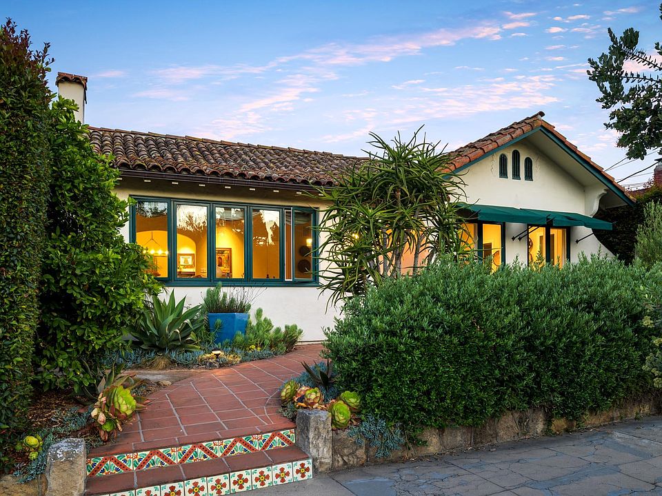 Welcome to an authentic Spanish Colonial Revival treasure lovingly updated and maintained. This 1920s Upper Eastside Santa Barbara charmer is a perfect blend of historic elegance and modern convenience. Overflowing with original architectural details, this home offers unique character that has been thoughtfully preserved and enhanced. It features four bedrooms in total, including a primary suite with an ensuite bathroom and walk-in closet. One bedroom and a full bath are on the entrance level, while two additional bedrooms and another full bath are on the lower level, accessible from within the home or via a convenient exterior entrance. The entrance level boasts a formal living room with a fireplace, a formal dining room with an original built-in cupboard, a bright breakfast nook, and a sunroom. The restored kitchen is a harmonious blend of original details and modern amenities, including chef-grade appliances and thoughtfully designed workspaces. A wonderful, covered patio off the kitchen offers a delightful space to enjoy the beautifully landscaped garden. The lush backyard features an electric gate entrance, a two-car attached garage, multiple fruit and citrus trees, and a custom chicken coop. Experience the charm and sophistication of this Spanish Colonial Revival home, just steps away from the Mission & Rose Garden, where every detail has been carefully considered to provide comfort and elegance.
