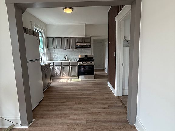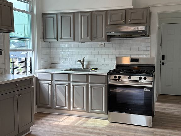 Brand new 2br 1 bathroom fully renovated apartment, locate don second floor. open concept kitchen and living room, with grey cabinets and white countertops, master bedroom has huge closet and multiple windows, brand new wood floors throughout the unit. Stainless steel appliances including hood vent and gas range. Great school districts. Fenced parking lot application fee of $75 per person 1.5 month security and 1st month rent tenant is responsible for all utilities water, sewer, gas ,electric