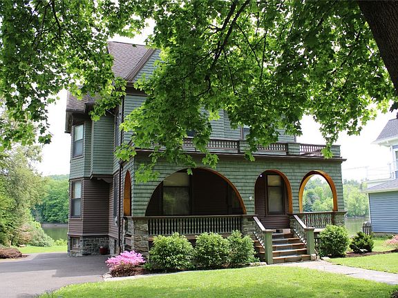 Pristine Award Winning Home w/ 4 BRs & 2 Full BAs. Incredible architectural design. Handcrafted ornate woodwork with inlayed designs throughout. Alluring stain glass windows. Elegant custom built gourmet kitchen hosts quartz countertops w/ island, S.S. appliances, pantry and Cherry dove tail cabinetry. 1st floor family room has tongue & groove vaulted ceiling, gas stove, insulated windows and a breath taking view of the river. This home also has Central A/C, updated electric, storage galore, walk-in closets, stunning foyer w/ inviting fireplace and reading nook, impressive pocket doors, rich paneling, remodeled bathrooms, master bedroom w/ gas fireplace, convenient 2nd floor laundry plus 3rd floor has finished bonus spaces ideal for office or craft rooms. Perennial gardens in progress. Walking distance to restaurants and activities in the heart of the Village. Property has been surveyed.