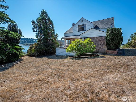 Iconic beachfront home on beautiful Whidbey Island! This majestic 3 story home sits on a 3/4 acre lot in Dugualla Bay with an amazing beach and stunning views. Home was built in 1942, has 3600 sf and tons of potential. Main level includes living room with lots of windows to take in the views, double french doors to the patio, large kitchen, plus bedroom and main bath. Upstairs are more bedrooms and office/den space, all with views, and full bathroom. Lower level has it's own entrance, huge family room with fireplace, 3/4 bath, office, den or studio space, PLUS it's own kitchen. Don't forget the beach! You'll love it. Home needs some love to return to it's former glory. Bring your ideas and make this your very own Island dream home!