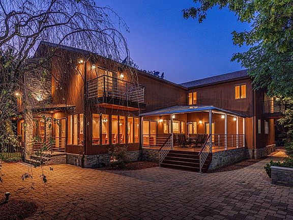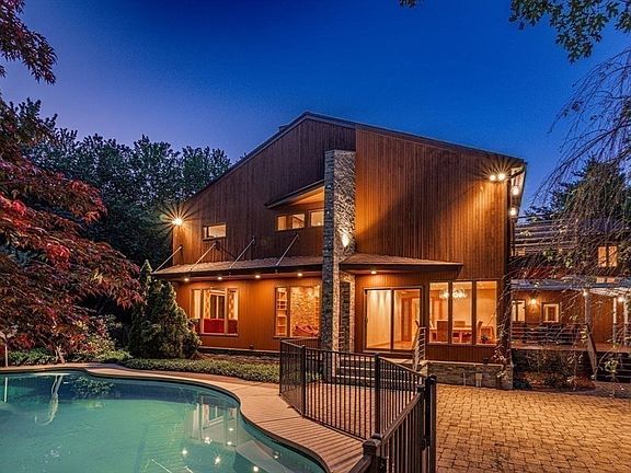 New Price! This luxurious contemporary home is an architectural gem offering 3 flexible levels of multigeneration living & offering 6 bedrooms on secluded 3+acres. Featuring expansive windows, an eat-in gourmet kitchen with Miele and Subzero appliances and quartz countertops, a statement dining room with views of the private grounds, multiple balconies thruout, heated pool, covered deck & gazebo. The primary suite includes a spa-like bathroom with sauna/steam room, skylights & fireplace. New 6-bedroom septic system, heated tile flooring, hardwoods, tandem offices with separate outside entrance, home gym, hobby room & fabulous finished lower level offers an in-law suite/teen getaway with home theater/sport room. Outdoor amenities include an inground heated gunite pool, patio, lighted play area, gazebo, landscape lighting, generator and oversized parking. No expenses were spared! Many opportunities for this one-of-a-kind property