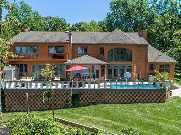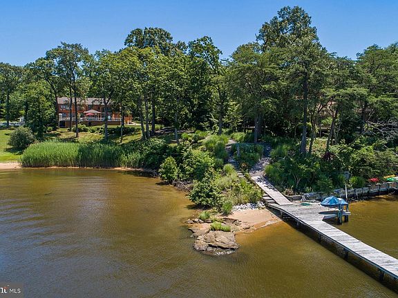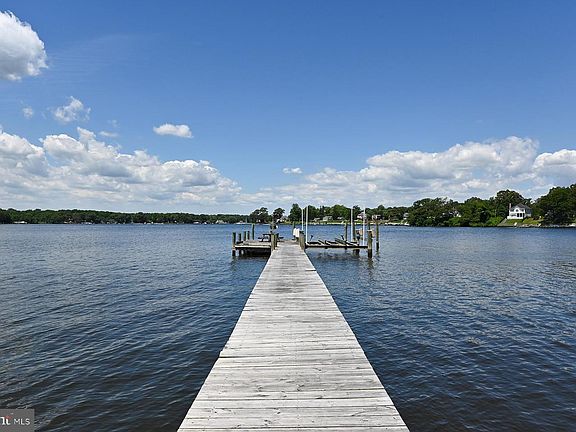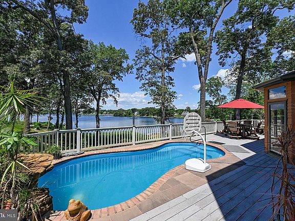 342 Hunner Road is a spectacular 5-bedroom waterfront home set on a very private 1.75 acres. The westward-facing home overlooks the private pier with 8 ft water depth on Swan Cove, on the north side of the Magothy River. A paved path allows for a golf cart to deliver supplies down to the dock. There's also an in-deck pool so staying cool every summer day is easy...or stroll down to the beach. The property also features a separate office which is perfect for those with a home-based business or it could serve as an in-law suite. The wooded drive leads to the gracious home with three-car attached garage. An impressive entrance includes a new mahogany door. There is plenty of parking for family and friends. Once in the foyer, you'll immediately have double water views - to the pool and the river beyond. The gourmet kitchen, with granite counters and light oak cabinets, is the hub of the home. The space flows easily from the kitchen to the living room, game room, and family room. The open floor plan means water views from virtually every angle, whether at the dining room table or playing pool. The 2-story living room is a space for all seasons - throw open the doors and you're poolside or, in colder months, sit by the stacked stone fireplace with wood stove. Adjoining the living room is a cozy seating area that opens to the glassed-in porch with refrigerator and grill. This is the perfect spot for preparing food and serving guests from April through November. When you're not out on the large deck, there's the game room with pool table and bar, or the family room (with fireplace) that's the go-to location for a big screen TV. There are two half baths on the main level and gorgeous hardwood floors throughout. One of the best design elements is a main level primary bedroom suite and a second floor primary bedroom suite. The main level suite includes a sitting room or home office, a bedroom with octagonal tray ceiling, walk-in closet, and a water view bathroom with jetted tub & separate shower. The upstairs suite is the ultimate in luxury - huge bedroom with waterside balcony, fireplace, and bathroom with dual sink vanity, jetted tub, and separate oversized shower. There are two more bedrooms upstairs that have water views, while the 5th bedroom overlooks the front garden. These additional three bedrooms share two hall bathrooms, one with a shower and the other with a tub and separate shower. A unique feature of the property is the separate 1100 SF building with oversized garage. Currently configured for a home-based business, the building may be of interest for those needing a "one-level living" in-law suite. There are wood floors and carpeting, and there is a kitchenette and powder room. Although it's close to shopping and commute routes, the approach to 342 Hunner Road feels like you've entered an enchanted place! This incredible combination of beautiful home, deep-water dock (with easy access), beach, pool, and super private setting rarely becomes available. The next owner will be lucky to call it "home."