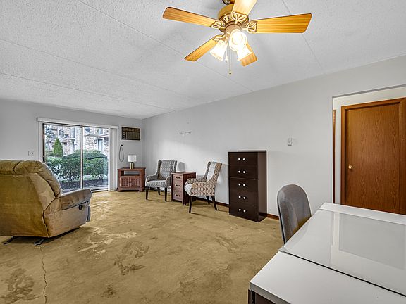 Cozy and convenient 1st floor 1 bed 1 bath condo with in unit laundry, living room with dining combo, if desired, or possible eat in kitchen. Two patios to enjoy, one off the living room that overlooks the courtyard and another off the kitchen for possible outside dining. Extra storage area available just outside the back door of the unit. The complex offers plenty of parking in its large lot, a private pool, and a play ground along with being located next to the beautiful walking trail and lake, not to mention just a short walk to the recreation center and park district too. Centrally located between North Ave and Army Trail Rd provides easy commuter access and a short drive to restaurants, shopping, schools, and more. Come take a look for yourself! This unit just needs your personal touches to make it home!