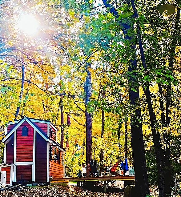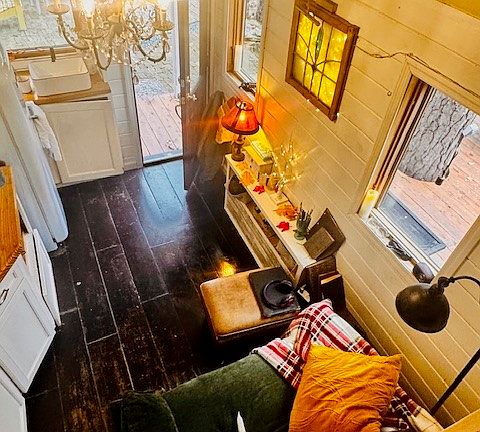 Custom built Cedar Tiny Home on 6.394 wooded acres just outside city limits. Large deck and Fireplace gives this home a great outdoor living space. Many custom features in home, everything has its place. Heated/Cooled with mini split and a tiny wood stove heats the entire home. Composting toilet and deep soaking tub. Roof is double Italian Fiberglass Tiles making it very efficient. Bedroom is a loft and not included in sf. The 6 acres has several good building sites behind the tiny home. Have a place to live while you build your dream home and then use the Tiny Home as a Guest House or Nightly Rental. Windows were custom made in Savannah GA and are Gothic style in front and back, designed to maximize airflow throughout the home. Has an elaborate lighting system inside and out designed by NWA Lighting.