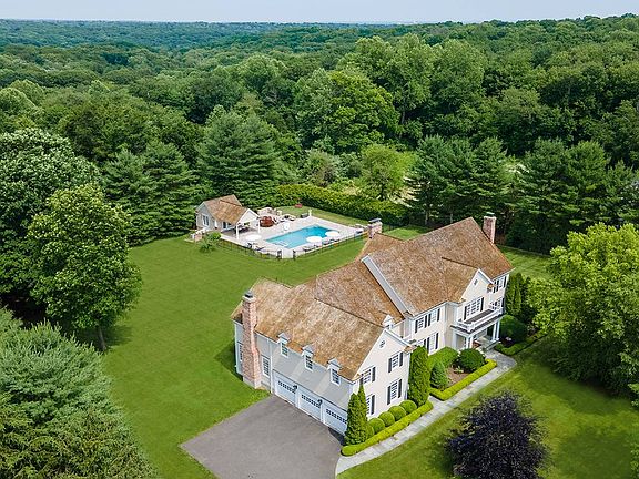 Stately home on 2+ level acres with beautiful pool & pool house. Nothing compares to this setting on the market at this price. Enjoy gracious, open, flow & space in this meticulous home. All bedrooms are en-suite with many of the baths recently updated with tasteful selections. Enter through a 2 story foyer with lovely double staircase, marble flooring & beautiful millwork-custom arches, moldings & built ins at every turn. Grand formal spaces, large private office & four season room with walls of windows to enjoy the views. The chef's kitchen features high-end appliances, roomy dining options, plenty of storage & connects to the family room complete with large stone fireplace & custom built ins. The kitchen also opens to a spacious deck to extend entertaining. There is a Full & half Bath & a Mud Room to complete the 1st floor. The 2nd floor features a large Master Suite-a true retreat with gas fireplace, 2 walk in closets & spa like master bath. There are 4 additional spacious Bedrooms on the same floor, all en-suite with one offering private stair access and a large office/den. The 3rd floor is finished with great space for a media room, also with full bath & large closets. The property is private & features a large patio with outdoor kitchen & Gunite pool. The pool house has desirable features like a partial kitchen & full bath. Located on a coveted cul-de-sac & surrounded by lovely homes on a level street. Minutes to commuting & convenient to great shopping & schools. Exquisite offering & truly "Move in ready"