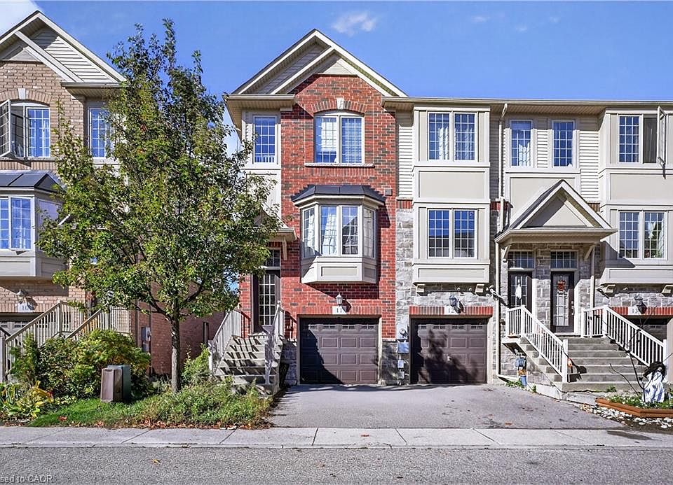 Welcome to 342 Mill Street, Unit 11 – a bright and stylish end-unit freehold townhome in a prime Kitchener location. This thoughtfully designed home features an open concept main floor with upgraded lighting, quartz countertops, and modern appliances in the kitchen, making meal prep and entertaining a breeze. This home is an end unit, so natural light pours in through the additional windows, creating a warm and inviting atmosphere throughout. Step outside to a large custom built deck perfect for summer BBQs, plus an upper balcony where you can relax with your morning coffee overlooking peaceful greenspace and a charming creek. Upstairs, you’ll find two spacious bedrooms, each with its own private ensuite – ideal for families with an older child, roommates, or anyone wanting extra privacy and convenience. Laundry is also located on this level for easy everyday living. The lower level offers even more flexibility with a finished den area that can serve as a third bedroom, home office, or cozy media space, complemented by its own bathroom on the same floor. The single car garage plus driveway parking for an additional vehicle ensures room for two cars. Located close to the LRT, the Expressway, and just a short stroll to St Mary’s hospital and the Iron Horse trail, this location blends urban convenience with a touch of nature right in your backyard. If you’ve been waiting for a move-in ready home with flexible living space, modern finishes, outdoor enjoyment, and a walkable lifestyle, this is the one.