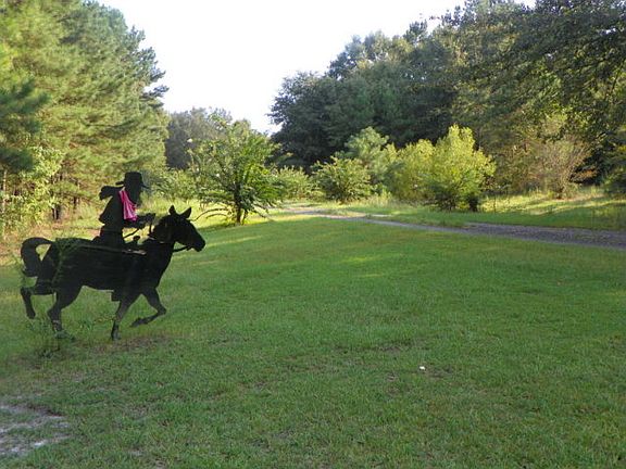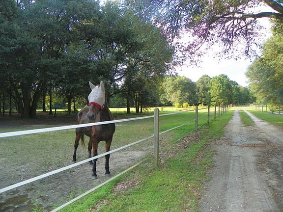 HORSE LOVERS: 22 ACRES with 8 stall barn that includes office, hay storage area, washracks, indoor arena, outdoor arena, 2 large and 3 small pastures planted in Bermuda, pole barn, 5 acre deer, turkey and wildlife sanctuary in rear of property. Home includes living room with 10 ft ceiling plus large separate family room, tiled kitchen includes smooth top range, refrig, dishwasher, private master suite with large walk in closet, garden tub, separate shower, his & her vanities. Master bedroom and living room open to nice screened porch, fenced area in rear, storage building, camper shelter, small pond, and children's playhouse with zipline. Very private, wooded setting with entrance gate. Ideal haven for horses and other animals and wildlife - a rare find.