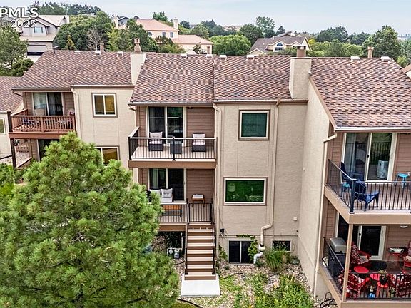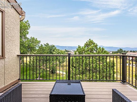 Location, open space, and Pikes Peak views all in D20 Gleneagle! This beautiful, updated home has many upgrades including two new composite decks with mountain and greenspace views, new carpet and interior paint, updated can lighting, bedroom ceiling fans, vinyl windows, a Radon mitigation system, and the HVAC and gas fireplace were serviced last month. You will love the updated kitchen with abundant storage open to the dining area and living room with a gas fireplace. The dining area has a walkout to the main level composite deck with iron railing. The primary and 2nd bedroom/office are on the second level each with their own private bathroom. The primary bedroom has a large walk-in closet and its own private deck with mountain and open space views. The third bedroom is in the basement along with a game room/study, and another 3/4 bath. There is an attached two car garage and plenty of parking for guests. Complex is pet friendly (check HOA guidelines). The complex has beautiful xeriscaped common space with walking paths, park style benches, and picnic table. The open space out the back door is owned and maintained by the Gleneagle Civic Association, the HOA for the surrounding houses. The open space is over 100 acres with maintained trails available to walk, run, bike, & walk the dog on. Gleneagle townhomes are in the center of Gleneagle minutes away from the Academy and I-25. This is a unique opportunity to live in a beautiful turn-key townhome that backs to open space with unobstructed mountain views in quiet Gleneagle, a community that is close to all that Northgate and Monument have to offer with tons of shopping, restaurants, and entertainment right around the corner. Watch the Air Force Academy jets during graduation from your deck!