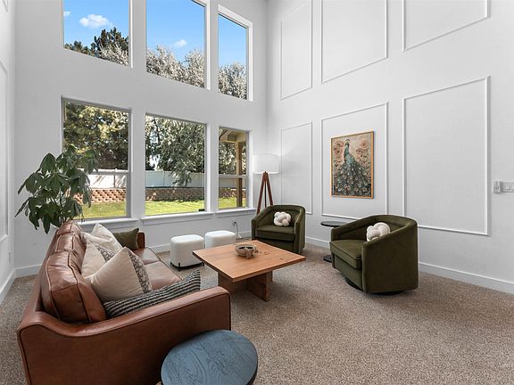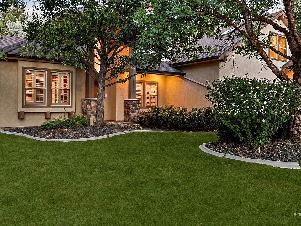 Exceptional property on a premier corner lot with no rear neighbors in the sought-after Countryside Estates in Eagle. The striking interior boasts soaring ceilings in the family room, rich cherry hardwood floors, and a beautiful floor-to-ceiling stone fireplace. Spanning over 3,500 sq. ft., the impressive floor plan offers 5 spacious bedrooms, 1 operating as an executive office with custom built-ins, a formal dining/flex room, multiple living areas ideal for entertaining, and a massive bonus room that could serve as a 6th bedroom. The gourmet kitchen showcases a quartz island with waterfall edge, custom cabinetry, double ovens, and a pantry. The main-level owner’s suite features tray ceilings, sliders to a private patio, dual vanities, a soaker tub, tile shower, and walk-in closet. Upstairs includes 3 bedrooms, a full bath, and a large bonus room. Perfect for indoor/outdoor entertaining with a private, fully fenced yard, covered patio, and lush landscaping. 4-car tandem garage with abundant storage.