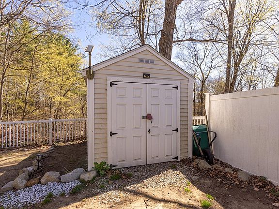 Beautifully updated antique Colonial full of character and charm. The first floor features a bright, updated eat-in kitchen with a breakfast bar, a cozy living room and a bedroom/office/playroom, both with beautifully refinished pine floors, fresh paint and new ceilings. The full bathroom features a newer soaking style tub/shower, vanity and tile floors. Adjacent to the kitchen you will find a dining room/sunroom with newly replaced drywall and fresh interior paint. On the 2nd floor you will find a spacious Master Bedroom with hardwood floors, and a sizable walk-in closet. Outside the home you will find a well maintained paved driveway with a turnaround and set back far from the main road. Fully fenced-in backyard, new stone paver patio and one year old metal shed make up your peaceful, outdoor oasis. Although the home is older, all the "big stuff" has been taken care of so you can move right in. Updated plumbing and electrical, maintenance free vinyl siding, vinyl replacement windows, new insulation added in the attic and newer roof, furnace and oil tank. This is a perfect starter home or place for someone looking to downsize. Showings begin at Open House on Saturday and Sunday, April 22nd - 23rd from 10am-12pm