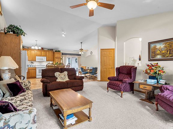 Meticulously maintained and move-in ready! From the minute you walk in, you will feel right at home! The craftsmanship is apparent featuring awesome design details and arched doorways. The vaulted living room is drenched in sunshine and flows seamlessly into the kitchen. This eat-in kitchen boasts great wood toned cabinets, white appliances, and an island with bar seating. This space also provides access to the rear deck, perfect for those fall evenings! Just off this space, you will find the primary bedroom and ensuite. Also on the main floor, you will find an additional bedroom, full bathroom, and main floor laundry for added convenience! Moving to the walk-out lower level you will love the additional family room space, third bedroom, full bathroom, and great storage space! The exterior is just as impressive featuring great curb appeal, an attached two-stall garage, a fenced-in backyard, and a storage shed. You don't want to miss this one! Schedule your tour today!