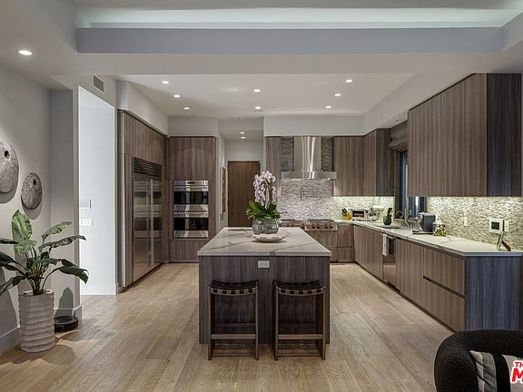Discover this 3 bed/3.5 bath architectural modern nestled between San Vicente and Sunset in one of Brentwood's most coveted enclaves, offering the perfect harmony of vibrant city lifestyle and seclusion. The open floor plan spills effortlessly from the grand entry, through the sleek living room with custom-built bar and fireplace, past the dining room and into the oversized chef's kitchen with quartz slab countertops, ample center island and custom cabinetry. Adjacent to the kitchen sits another large family room. Two sets of retractable glass doors seamlessly integrate the open indoor spaces to the private courtyard paradise at the rear of the home, complete with a built-in culinary station, fountain, firepit, and multiple seating areas enveloped by lush greenery. Ascend the grand floating staircase and find the resort-quality primary suite, boasting dual customized wardrobes and glass doors leading to a private terrace. Additional bedrooms each feature ensuite bathrooms. This sun-drenched sanctuary enjoys prime positioning a stone's throw from Brentwood Country Club, Brentwood Farmers Market, San Vicente's boutiques and restaurants, with easy access to Ocean Ave, Montana Ave and the heart of Brentwood; perfectly situated to experience the very best of LA's vibrant Westside while maintaining utmost privacy.