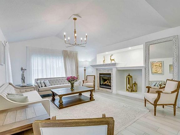 Double attached garageModern kitchenTons of cabinetryEnormous breakfast barDining roomHigh and vaulted ceilingCozy fireplace