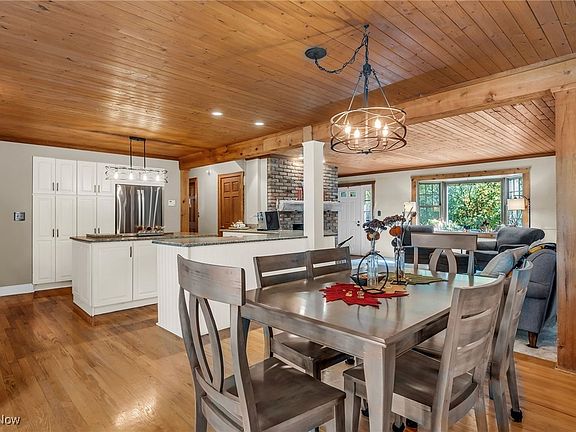Country living in the city on nearly 2-1/4 acres in Fairlawn! First time offered in 37 years, this gorgeously expanded Cape is set 350 feet off South Miller Road, nestled in a serene setting with trees screening the road for beautiful privacy and seclusion. This remarkable home has been completely transformed and reconfigured over the years. Quality workmanship is evident… from beamed ceilings and timeless crown moldings… to gleaming hardwood flooring… and the built-ins that add so much charm and character throughout. Gourmet Kitchen, the heart of the home, is a show stopper. A sweeping expanse of granite countertops, abundant KraftMaid brand cabinetry and ample task lighting make meal prep a breeze. Kitchen is open to Dining Areas; the warm and welcoming Great Room with lovely, raised hearth, brick fireplace; and the cozy Living Room with full wall, gas fireplace and 8-ft bay window. It’s an extraordinary living space, as comfortable as it is elegant, with plantation oak ceiling – single piece installation, tongue and groove. Other highlights include spacious, 30 x 14 Primary Bedroom with split HVAC, triple closets, generous seating area, and dormer niche with ceiling fan; two 13 x 12 bedrooms; oversized Two-Car Garage with 220 line for electric vehicles; 15 x 12 Mudroom with convenient storage benches; large Deck; inviting Gazebo with electric; Shed with electric; and Lower Level Media Room and Rec Room. Notable recent updates: Furnace (both) (2023); Central Air (both) (2023); Hot Water Tank (2023) Refrigerator (2023), Range (~2021), Roof and Vinyl Siding on House and Shed (2021); Laminate Wood Flooring - Second Floor (2023); Capet in Living Room and Great Room (~2020). Great location includes Fort Island/Griffith's Park, Fort Island Primary Elementary School, and St. Hilary Elementary School as nearby neighbors, along with all the wonderful amenities Northeast Ohio offers! This incredible, move-in ready home is a must-see! Schedule your private showing today!