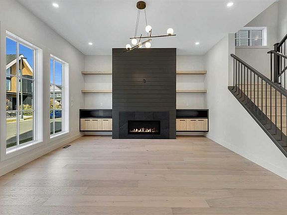 Welcome to HARMONY HAVEN — a stunning modern farmhouse that embodies the essence of contemporary living while embracing the warmth of rustic charm. Designed by PHASE ONE DESIGN and expertly built by DOMINIUM RESIDENTIAL, this home is perfectly situated in the desirable community of Currie, just 7 minutes from Downtown Calgary. With 3,256 square feet above grade and over 4,300 square feet of developed living area, HARMONY HAVEN offers ample space for both relaxation and entertaining. As you approach, the sleek, modern façade draws you in, promising the elegance that awaits within. The heart of this home is the exquisite kitchen, featuring a striking waterfall island, a through sink, and top-of-the-line Fisher & Paykel built-in panel-covered fridge and freezer. Cooking enthusiasts will appreciate the natural gas stove with pot filler, convection oven, and speed oven/microwave, all complemented by stylish three-tone custom cabinetry illuminated by under-cabinet lighting. The spacious living room is designed for comfort, showcasing built-in shelving, a cozy fireplace, and a stunning lighting fixture that adds a touch of sophistication. This inviting space offers beautiful views of the picturesque streetscape, creating a serene atmosphere. Safety is prioritized with stairway lighting, guiding you throughout the home. The double car garage is fully finished with paint and epoxy flooring, featuring a charging point for your electric vehicle—perfect for the eco-conscious homeowner. HARMONY HAVEN is equipped with advanced technology, including rough ins for voice commands, wiring for cameras, four two-speaker zones, indoor ceiling speakers with woofers, outdoor speakers for the deck, and myQ garage door openers for remote access. The fully landscaped yard is enclosed with premium vinyl fencing, providing both privacy and style. Retreat to the elegant ensuite, where you'll find heated floors, a spacious double vanity with custom mirrors, and a luxurious freestanding tub. The second floor includes the luxurious primary bedroom and two large secondary bedrooms and bathroom plus a laundry room, storage close all perfect for family or guests. The loft floor consists of a bonus room, a large home office and an additional bedroom/flex room with a full bathroom The breathtaking lower level is an entertainer's dream, featuring custom built-ins, a grand wet bar, and generous natural light. This versatile space also includes a large flex room and an additional bedroom. Located in one of Calgary’s premier inner-city communities, HARMONY HAVEN offers easy access to parks, dog parks, walking and biking trails, and over 12 schools catering to all age groups. This exceptional home seamlessly blends elegant design with modern conveniences, making it a must-see for any discerning buyer. Don’t miss your opportunity to claim this luxurious residence as your own!