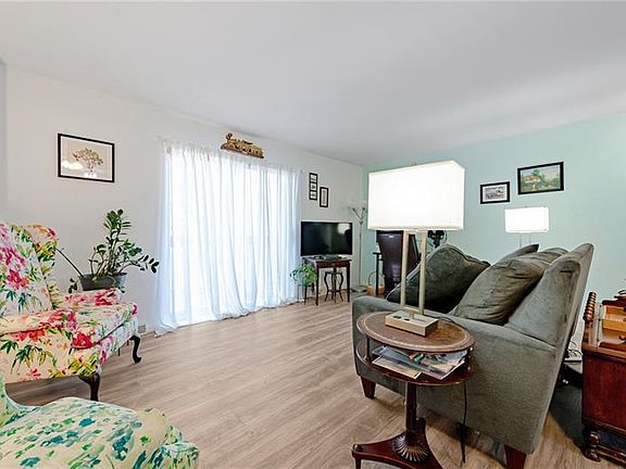 Adorable townhome in well maintained condition! This home has spacious rooms, new flooring and lots of natural light in an open floor-plan. The living room dining room combination lead to the fully equipped kitchen. All newer appliances stay. (As is) The upper level boasts two large bedrooms each with nice closet space and updated full bath! The home has been freshly painted in charming cool colors. Downstairs on the entrance level you'll find MORE storage, a nice size laundry room with washer and dryer and a half bath. Walk out to the rear of the home to a small patio covered by the above 8x7 deck. One car garage with amazing shelving and a work bench that stays! Ring doorbell stays!