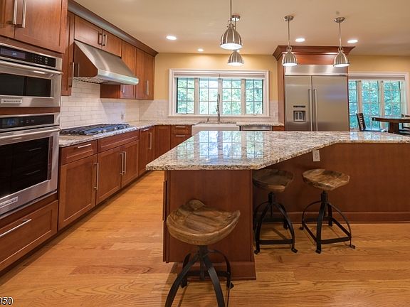 Welcome to the beautiful, desirable and quiet section of Pompton Plains. This home is situated at the top of Sunset Road in Pompton Plains amongst a quiet dreamy hilltop where time stands still. This part of town is filled with lush foliage and plenty of space it's as if you've left the world behind. Pequannock Township is known for its flat terrain. This updated turn key spacious brick and aluminum Custom Cape Cod Colonial home is set back from the street. It sits on 1.91 acres of flat property backing up to woods providing privacy and deep serenity. EMTEK hardware is featured throughout the entire home. The bright well-lit eat-in Kitchen has been completely renovated with a large Kohler apron sink with commercial grade faucet by Kohler. There's a window that looks out onto the park like front yard. Large working island, granite countertops, Kitchen Aid stainless steel appliances, gas stove top, built in wall oven and microwave, dishwasher, oversized refrigerator, and a convenient beverage fridge built into the island..Cherry wood cabinets, and a wine rack. A bright large living room with plenty of windows features relaxing views of the gorgeous mature trees and natural landscape. 3 season room/ backporch with floor to ceiling sliding glass doors that open to the backyard patio retreat. The Basement includes a huge laundry room. Hardwood floors throughout the home. New HVAC system. House features all new Anderson 400 windows.City water in the street.