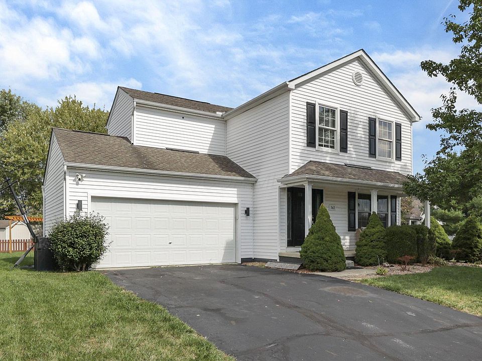 Coming Soon! Two-story home on a corner lot in North Newark with 4 nice-sized Bedrooms & 2.5 Baths. The first level features an open great room with gas fireplace, newer vinyl plank flooring, and the sliding glass door open onto a huge deck. All bedrooms and full baths are upstairs. The full basement has plenty of room for storage or potential to finish and add extra living space. Located in a quiet neighborhood close to everything you need.