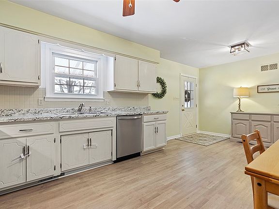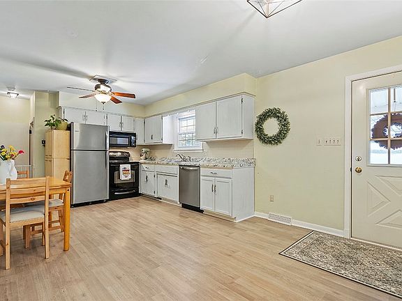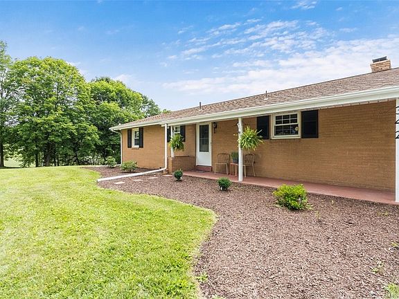 This 3 bedroom/1.5 bath well-built brick ranch sits on a gorgeous 2 acre lot just minutes from I-79, Rt 19, Seneca Valley Schools, Zelienople, Cranberry, and State Parks. You are welcomed into the open concept kitchen/dining area with newer flooring, counters, and appliances. The living room features a wood burning fireplace, brick hearth, and slider to a three-season sunporch. Three bedrooms with hardwood flooring and a full bathroom with double vanity are located down the hall from the living room. The attached garage is located off the kitchen on the main level. A finished lower level includes an additional living area, cozy wood burner, updated half bathroom, laundry room with shower, plenty of storage space, and access to a backyard concrete patio. The backyard boasts a flat former grass tennis court, a former 1-horse stall barn, and large shed.