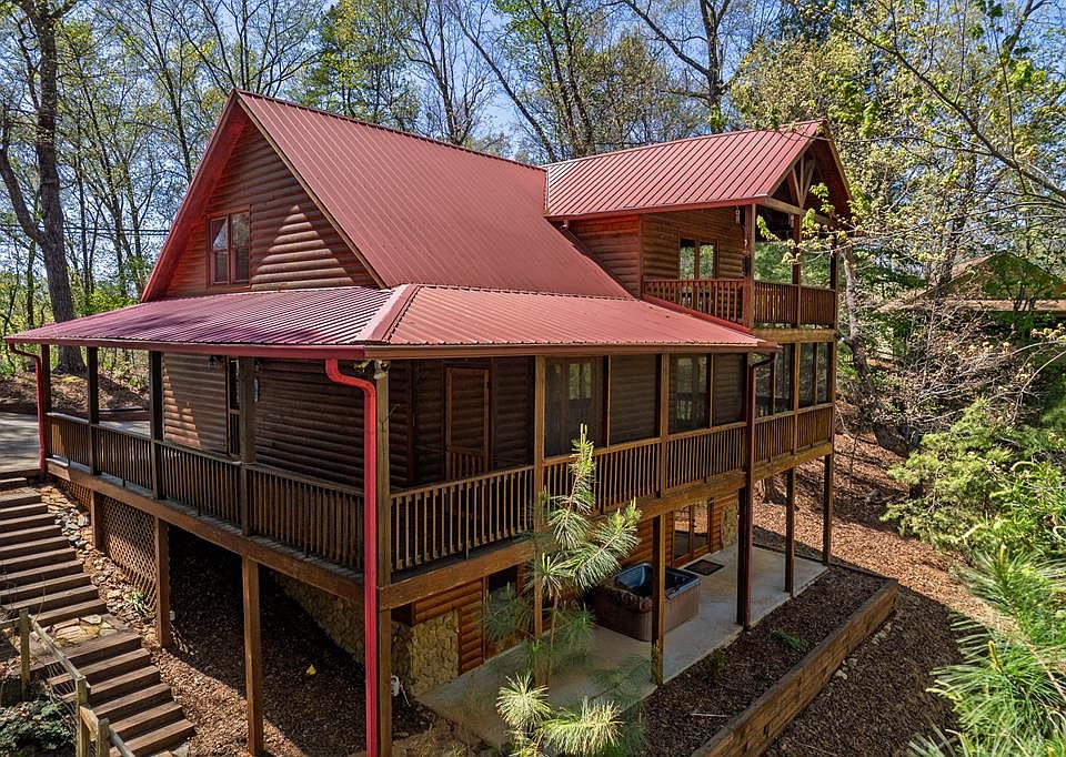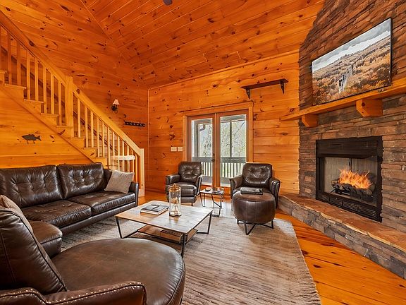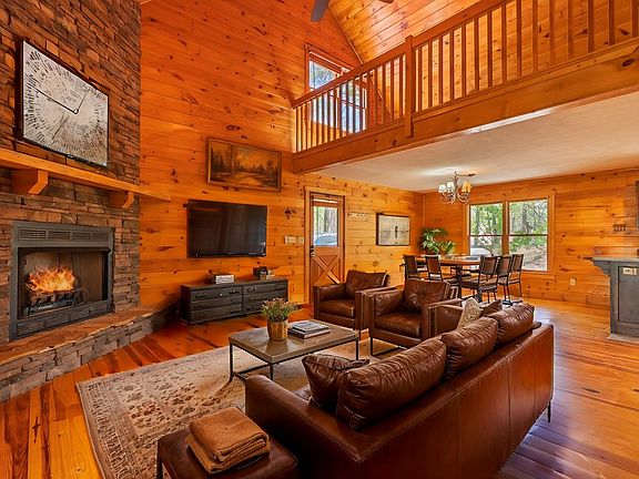 SELLER FINANCE AVAILABLE! Seller will consider all offers. Enchanting 3-bedroom, 2-bath log cabin in the sought-after Coosawattee River Resort, close to the Ellington gate for easy access. This well-maintained cabin offers the perfect blend of rustic charm and modern upgrades. Enjoy a spacious two-story family room with a stunning stone fireplace, an open-concept layout with a cozy loft, and a primary suite featuring an upgraded bathroom with a separate soaking tub and walk-in shower. The finished basement includes a large bedroom and a partially finished bathroom with potential for future expansion. Outdoor living is a dream with a wrap-around deck and screened-in porch overlooking peaceful wooded surroundings and a hot tub waiting for you. The concrete driveway with turnaround, a fenced yard ideal for pets or gardening, and a storage outbuilding add practicality. Just 7 minutes to downtown Ellijay and 30 minutes to Blue Ridge, with wineries and mountain adventures nearby. Ideal for full-time living, a weekend retreat, or a profitable vacation rental—this cabin is mountain living at its best!