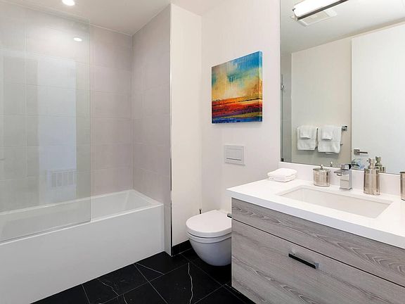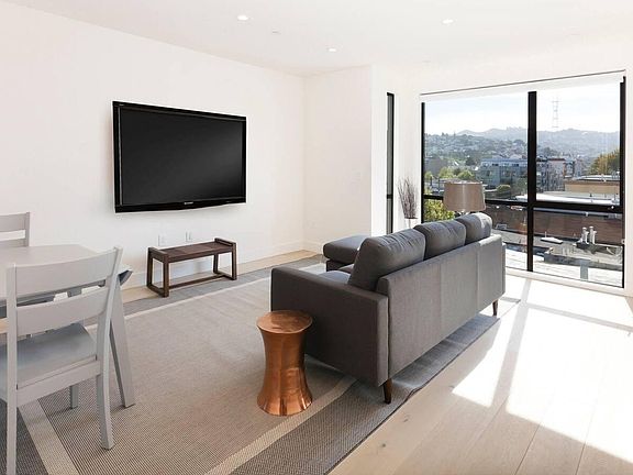 Located within a modern elevator building built in 2018, this 1-bedroom, 1-bathroom condo at San Francisco's most desirable Mission address creates the perfect backdrop for your personal style. As you enter the home, you are greeted by an open floor plan living room and dining room combination with hardwood floors. The kitchen is also open to the living area and has high-end stainless steel appliances including a four-burner gas range, dishwasher, and new refrigerator. The kitchen features counters, a tile backsplash, a deep sink, and high-end cabinets. The condo includes a GE washer/dryer in-unit and central air conditioning and heating. Building amenities include a beautiful rooftop terrace which spans the length of the whole building, giving residents breathtaking city views as well as access to a communal barbecue area, outdoor fire pit, and patio furniture. PG&E is paid up to $145 per month, after which the tenant is responsible. Water, sewer, trash, YouTube TV, and webPass Wi-Fi are included. Located near Valencia Street and 18th Street, this is one of the Mission's hottest locations. Enjoy all that San Francisco has to offer with the vibrant Mission at your doorstep. BART, Muni, tech shuttles, and freeways are all very accessible. Close to shops, parks, restaurants, and coffee shops, the location has a Walk Score of 97, a Transit Score of 100, and a Bike Score of 98. Now you can truly have it all in one of San Francisco's most dynamic and vibrant locations. A laptop computer is not included. Includes a desk for work-from-home tenants.