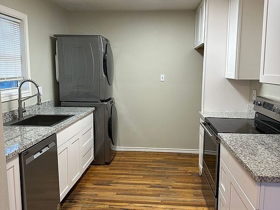 New faucetHardwood floorsNew cabinetsLarge bedroomsCentral heat and airGranite countertopsStainless steel sink