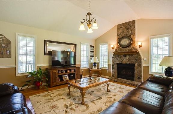 Take a step into this beautiful single level home in the Bailey Ranch Community. Upon entry, you will notice this large open floor plan with hardwood floors, large kitchen with island and stone fireplace. On the main floor you have all three bedrooms and two full baths. Downstairs you'll find a 1104 finished sq ft. Nice sized den, plenty of storage and a room that is currently being used as a fourth bedroom. This home also comes with a 1 year home warranty for buyers peace of mind. Propane tank and porch swing do not convey with the property. All information deemed reliable but to be verified by buyer/buyers agent.