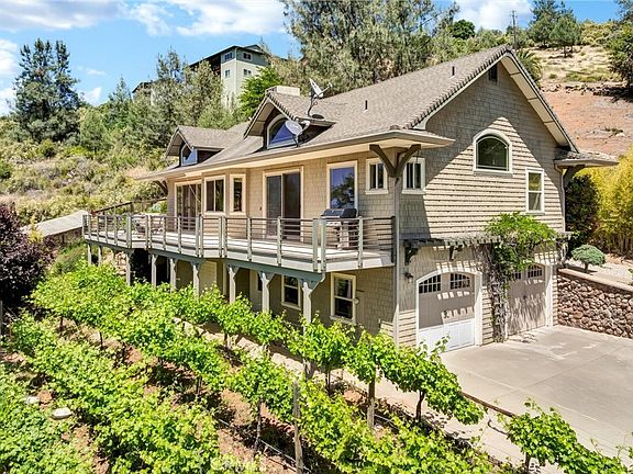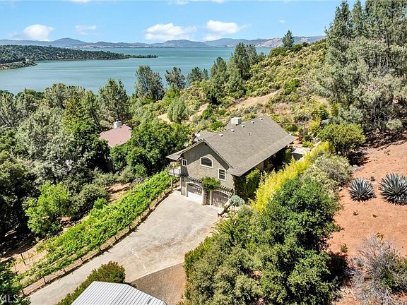 Experience Lakeside Luxury with Breathtaking Views! Step into the serenity and elegance of this expansive residence in the desirable Kelseyville area, boasting sweeping vistas of Clear Lake and majestic Mt. Konocti. This home is thoughtfully designed to accommodate various living arrangements, making it perfect for a range of lifestyles. The upper level showcases a sunlit and airy floor plan, featuring a cozy living space with a charming fireplace, a formal dining area, and a well-appointed kitchen that is ideal for both daily living and entertaining. Two spacious bedrooms, including a master suite with access to a sizable deck, a walk-in closet, and a luxurious ensuite bathroom with a walk-in shower and a separate soaking tub, complete the upper level. The lower level, with its own private entrance, offers a third bedroom, a home theater, and a wet bar, presenting an excellent opportunity for a guest suite, an artistic retreat, or a recreational haven. Outside, the property is a haven of tranquility, boasting a serene koi pond with a cascading waterfall, flourishing grapevines, and multiple relaxation areas. The expansive driveway and additional parking spaces provide ample room for vehicles, watercraft, or outdoor gear. Just a short distance from a public boat launch and marina, this home offers easy access to a plethora of water activities, including boating, kayaking, and fishing on Clear Lake. Nestled at the foothills of Mt. Konocti and surrounded by vineyards, local markets, and dining establishments, this residence strikes a perfect balance between natural splendor and community conveniences.