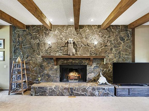 Beautiful hand-crafted woodworkSoaring vaulted ceilingsExposed beamsStunning wood-burning fireplaceStone wallLarge west windowsNatural light