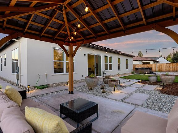 Welcome to this exceptional 2024-built Spanish-style residence located in the heart of Loomis, offering timeless curb appeal & a beautifully designed exterior. Spanning 2,906 sq. ft. on a single level, this home blends luxury, functionality, & modern upgrades throughout. Inside, the open-concept kitchen is a chef's dream w/ a GE Monogram range & oven, a stunning quartz island with sink, abundant cabinetry, & seamless flow into the living & dining areas perfect for entertaining & everyday living. Each of the 4 spacious bedrooms includes a private en suite bathroom, providing comfort & privacy for all. The backyard is a true showstopper w/ over $100K in brand-new landscaping & hardscaping. Enjoy the relaxing outdoor spa, concrete walkways, lush plants & garden beds, and a covered gazebo area designed for gatherings or peaceful retreats. Thoughtful outdoor lighting highlights the landscape & creates the perfect ambiance for entertaining. Additional highlights include owned solar (NEM 2.0) for energy efficiency & savings. Ideally located next to a top-rated LUSD elementary school & just minutes from Del Oro High School, this is the first home to come on the market after this sold-out Blackpine community was completed. Don't miss this rare opportunity, schedule your showing today!