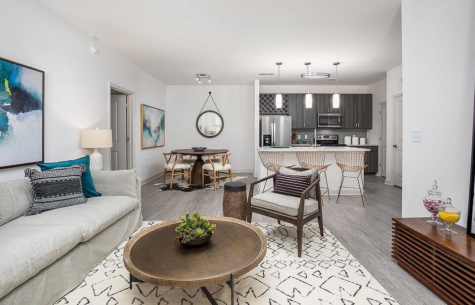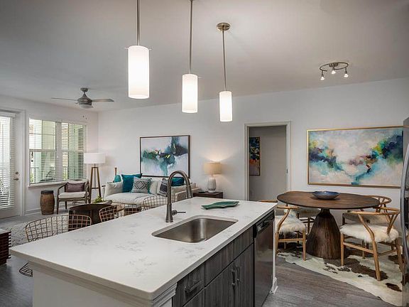 - Exterior features: , * Features may vary by suite, 1-, 2-, & 3-bedroom apartments, 9 ft. ceilings, Availability 24 Hours, Complimentary coffee bar, Designer light fixtures, Garden, Guest Room, Hardwood-inspired flooring, High-speed Internet Ready, Large bedrooms accommodate king size furniture, Large undermount kitchen sinks, On-Site Management, Online system for resident services, Outdoor grills and fire pit, Owner-managed, Package Receiving, Patios/balconies with storage, Planned community activities, Preferred Employer Program, Quartz countertops in kitchens and baths, RentPlus Resident Financial Services, Smooth-top electric ranges, Stainless steel appliance packages, TV Lounge, Tile backsplash in kitchens, USB-enabled wall outlet, Virtual golf simulator