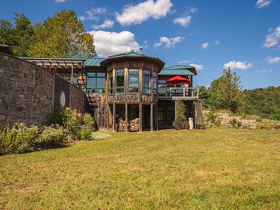 In perfect harmony with nature, this spectacular passive solar, partially earth-sheltered home offers everything you need and more. Private, with stunning views across the WV scenic ridgetops, breathtaking sunsets and sunrises, and enjoy West Virginia's wildlife right outside your windows. It just does not get any better than this! Built in 2012, the well-designed board-and-batten custom home spared no expense in its craftsmanship and meticulous detail. From the beautiful mosaic entry, natural lighting throughout, and the open floor plan, this is a one-of-a-kind home! The stunning great room boasts cathedral ceilings with beautiful beams and rounded archways, providing ample space for entertaining family and friends. The main floor offers a gorgeous custom chef's kitchen with maple cabinetry, stainless steel appliances, a professional six-burner gas range, prep island with seating, and granite counters, a formal dining room with entrance to the deck and outdoor seating area, a step-down, rounded sunroom for plants or the perfect reading nook with stunning views from all angles. Also on the main floor is a private study featuring custom cherry cabinetry, an observation loft accessible by ladder, and a built-in workstation. The owner's suite features a private outdoor seating area, providing access to the upper garden and hot tub area. It also boasts a private bath with an oversized walk-in shower, a double vanity, and a large walk-in closet. The main bath also features a mosaic design and is conveniently located next to the guest bedroom. Additionally, it includes a walk-through laundry room with ample storage and a bonus pet shower. Downstairs offers a cozy family room with a beautiful stone wood-burning fireplace, a half bath, an art studio with a bonus room that can easily be converted into another bedroom, an outdoor patio leading to the lower gardens and a fountain feature, a component/utility room, and an unfinished storage area. Attached to the home is a three-car garage, featuring electric doors, shelving, and a workspace, which is accessible from the covered front porch. The house also has a backup generator and recent survey. An additional list of this property's amenities and disclosures is available upon request. If you're looking for a multi-family property, 3421 Little Sancho Creek Road, a farmhouse with 24 Acres, a high tunnel greenhouse, workshop, garage, and outbuildings, is also available next to this stunning property. Call the listing agent for more information and disclosures.
