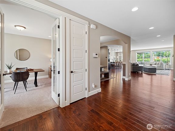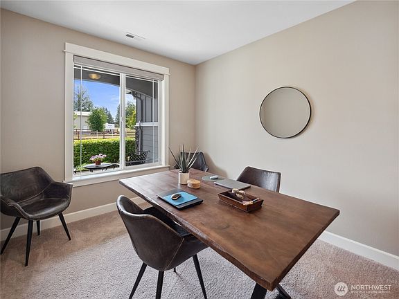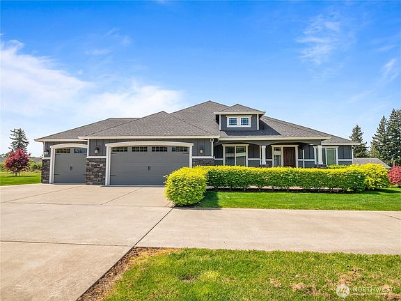 Mt. Rainier & foothill views at this 2018 Garrette Custom Homes resale on 2.82AC in city limits of Enumclaw w/ 4 beds, 2.75 baths, & 3,550SF. Open concept kitchen w/ granite CTs, SS appliances, double oven, adjacent dining room, coffee bar & island seating. Spacious living area w/ gas fireplace. Primary bedroom w/ private 5pc full bath includes WIC, custom no step shower, garden tub, & tile floors. Laundry/utility room w/ tile floors & mud sink. Bonus room up w/ 3/4 bath & 4th bedroom. 40'X60' detached shop w/4-bays, 1 drive-thru, 12'X14' doors (w/openers), separate utility meters, spray foam & batt insulation, 400kBTU gas heater, & 3/4 bathroom. Garden/tool shed, compost area + 10- 4'X8' raised garden beds. 90% efficient gas furnace w/AC.